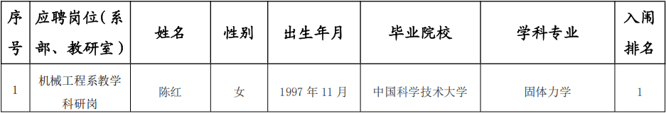 根据《景德镇陶瓷大学2025年高层次人才招聘公告》精神,机械电子工程学院开展了2025年第二批博士人才专业面试考核,现将入闱体检(心理测试)人员名单公布如下: