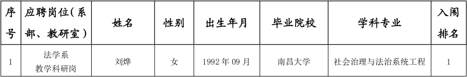 根据《景德镇陶瓷大学2025年高层次人才招聘公告》精神,法学系开展了2025年第一批博士人才专业面试考核,现将入闱体检(心理测试)人员名单公布如下: